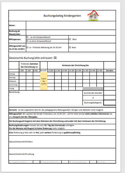 Für den Kindergarten (.pdf): (Buchungsbeleg Kindergarten ab September 2025) (Bild bitte anklicken)
